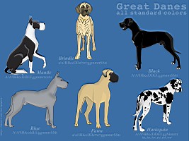 The Great Danes can be seen in many colours - only a few are 'acceptable' for the Conformation Ring.