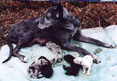 2 Blue Merles / 2 Blacks / 1 Harlequin Female.