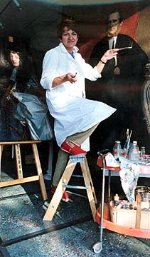 Last Friday, the painting was just moments from being reattached to the Osgoode Hall walls, when a commissionaire--charging toward a cigarette break--fell into the artwork.